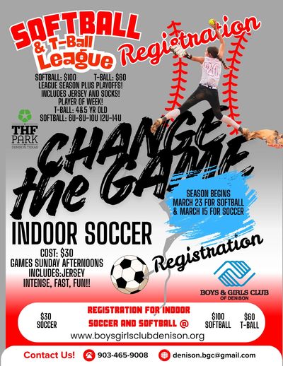 league in Denison for youth. It is a great time for girls to learn the skills, teamwork, and sportsmanship for a game that is big time in North Texas. Ages 5 and up!